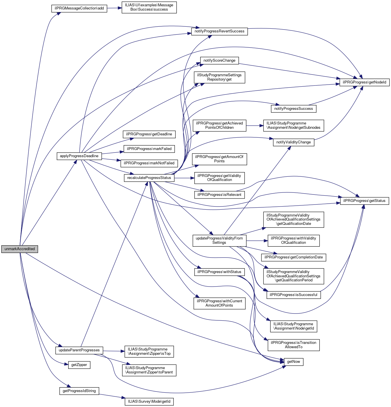 Here is the call graph for this function:| unmarkAccredited | ( | ilStudyProgrammeSettingsRepository | $settings_repo, |