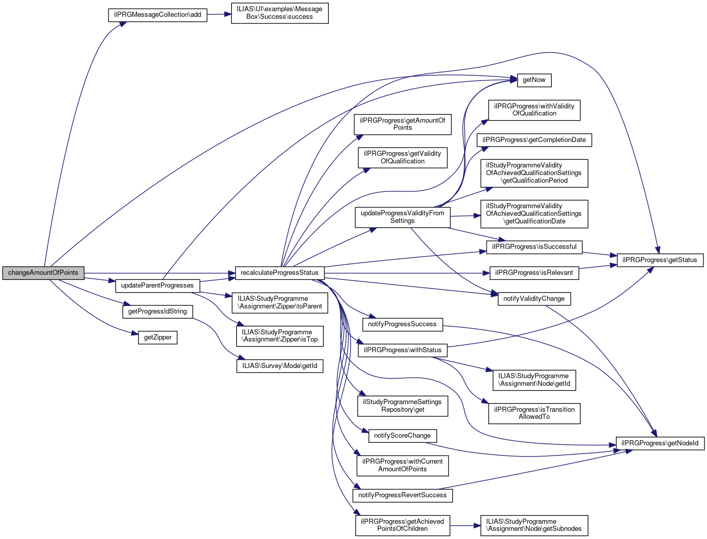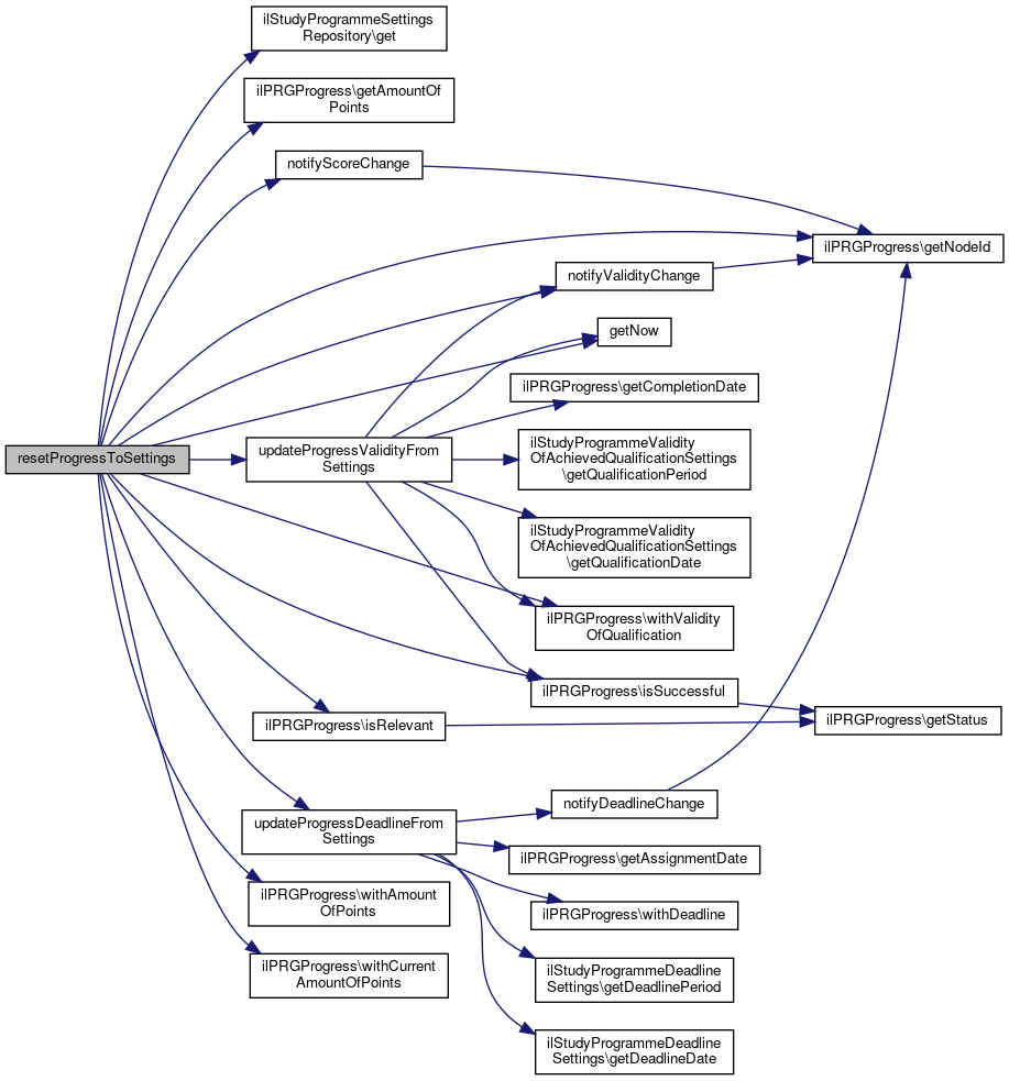 References ILIAS\LTI\ToolProvider\$settings, ilStudyProgrammeSettingsRepository\get(), ilPRGProgress\getAmountOfPoints(), ilPRGProgress\getNodeId(), getNow(), ilPRGProgress\isRelevant(), ilPRGProgress\isSuccessful(), notifyScoreChange(), notifyValidityChange(), updateProgressDeadlineFromSettings(), updateProgressValidityFromSettings(), ilPRGProgress\withAmountOfPoints(), ilPRGProgress\withCurrentAmountOfPoints(), and ilPRGProgress\withValidityOfQualification().