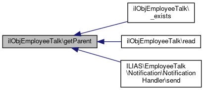 Here is the caller graph for this function:| ilObjEmployeeTalk::getParent | ( | ) |