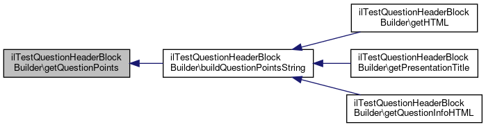 Here is the call graph for this function:| ilTestQuestionHeaderBlockBuilder::getQuestionPoints | ( | ) |