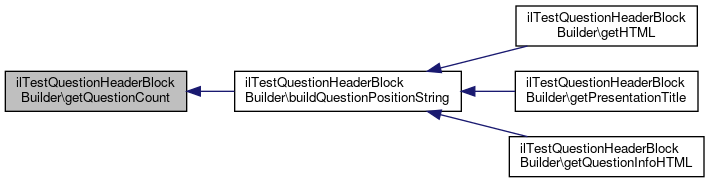 Here is the call graph for this function:| ilTestQuestionHeaderBlockBuilder::getQuestionCount | ( | ) |