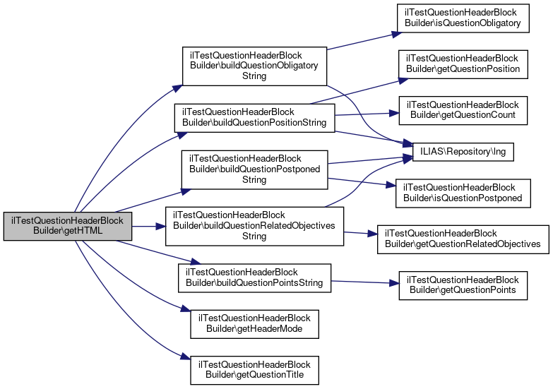 Here is the caller graph for this function:| ilTestQuestionHeaderBlockBuilder::getHTML | ( | ) |