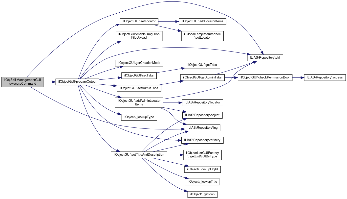 Here is the call graph for this function:| ilObjSkillManagementGUI::executeCommand | ( | ) |