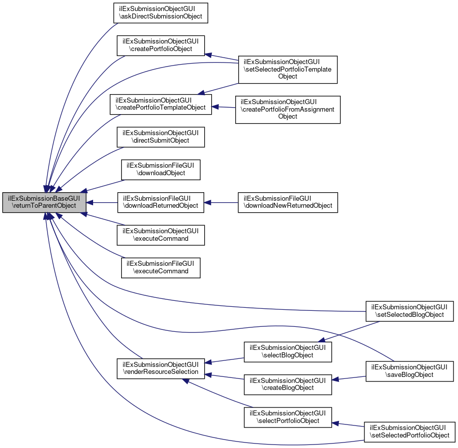 Here is the caller graph for this function:| ilExSubmissionBaseGUI::returnToParentObject | ( | ) |
