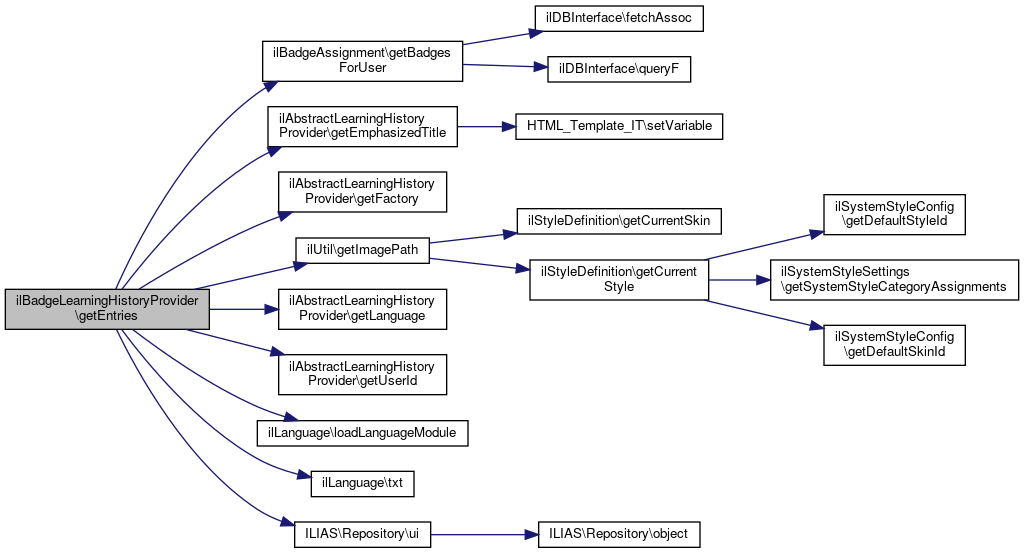 References Vendor\Package\$c, ilAbstractLearningHistoryProvider\$lng, $url, ilBadgeAssignment\getBadgesForUser(), ilAbstractLearningHistoryProvider\getEmphasizedTitle(), ilAbstractLearningHistoryProvider\getFactory(), ilUtil\getImagePath(), ilAbstractLearningHistoryProvider\getLanguage(), ilAbstractLearningHistoryProvider\getUserId(), ilLanguage\loadLanguageModule(), ilLanguage\txt(), and ILIAS\Repository\ui().