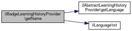 Here is the call graph for this function:| ilBadgeLearningHistoryProvider::getName | ( | ) |