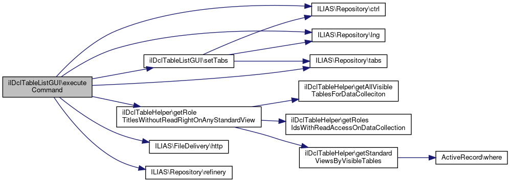Here is the call graph for this function:| ilDclTableListGUI::executeCommand | ( | ) |
