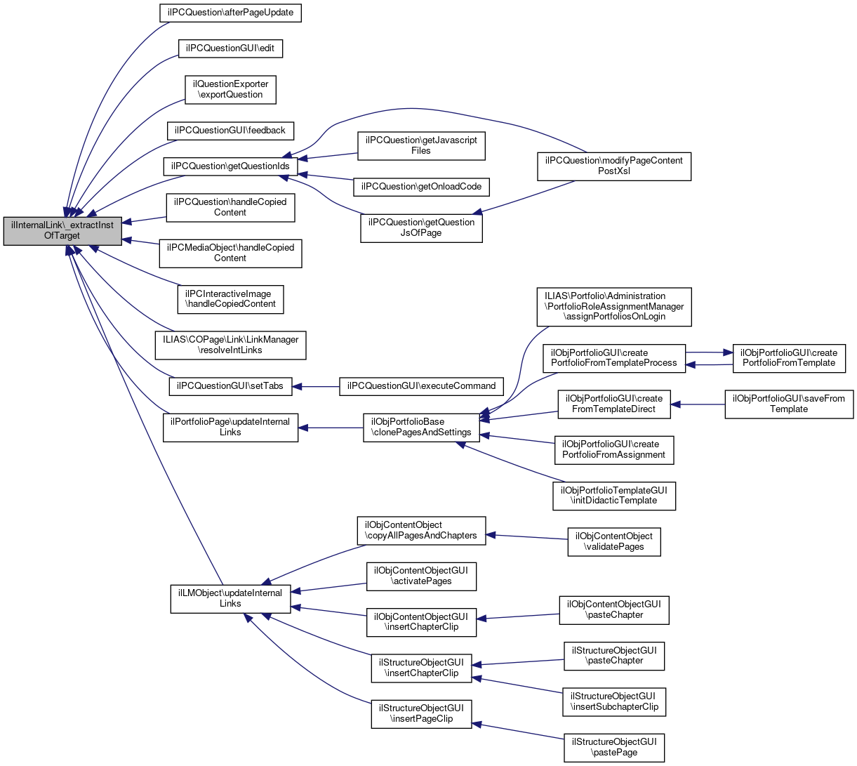 Referenced by ilObjMediaObject\_exists(), ilGlossaryTerm\_exists(), ilLMObject\_exists(), ilPCQuestion\afterPageUpdate(), ilPCQuestionGUI\edit(), ilQuestionExporter\exportQuestion(), ilPCQuestionGUI\feedback(), ILIAS\COPage\Page\PageContentManager\getInitialOpenedContent(), ilObjMediaObject\getLinkedMediaObjects(), ilPCQuestion\getQuestionIds(), exPageContentQuestions\getQuestionOfflinePresentations(), ilPCQuestion\handleCopiedContent(), ilPCMediaObject\handleCopiedContent(), ilPCInteractiveImage\handleCopiedContent(), ILIAS\COPage\Link\LinkManager\moveIntLinks(), ilPortfolioPage\renameLinksOnTitleChange(), ilPCInteractiveImage\setDomNode(), ilPCQuestionGUI\setTabs(), ilPortfolioPage\updateInternalLinks(), and ilLMObject\updateInternalLinks().