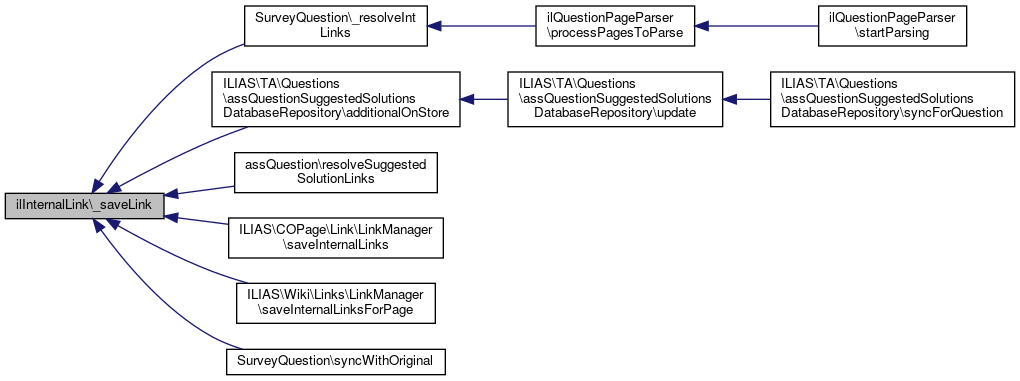 Referenced by SurveyQuestion\_resolveIntLinks(), ILIAS\TA\Questions\assQuestionSuggestedSolutionsDatabaseRepository\additionalOnStore(), assQuestion\resolveSuggestedSolutionLinks(), ILIAS\COPage\Link\LinkManager\saveInternalLinks(), ILIAS\Wiki\Links\LinkManager\saveInternalLinksForPage(), and SurveyQuestion\syncWithOriginal().