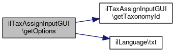 Here is the call graph for this function:| ilTaxAssignInputGUI::getOptions | ( | ) |