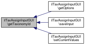 Here is the call graph for this function:| ilTaxAssignInputGUI::getTaxonomyId | ( | ) |