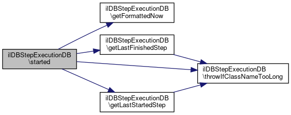 Here is the caller graph for this function:| ilDBStepExecutionDB::started | ( | string | $class, |