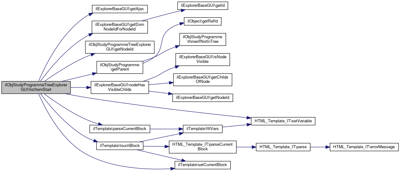 Here is the call graph for this function:| ilObjStudyProgrammeTreeExplorerGUI::listItemStart | ( | ilTemplate | $tpl, |