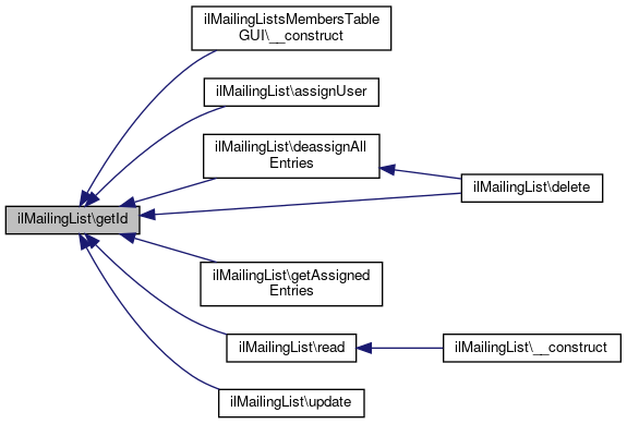 Here is the caller graph for this function:| ilMailingList::getId | ( | ) |