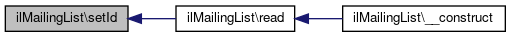 Here is the caller graph for this function:| ilMailingList::setId | ( | int | $a_mail_id = 0 | ) |