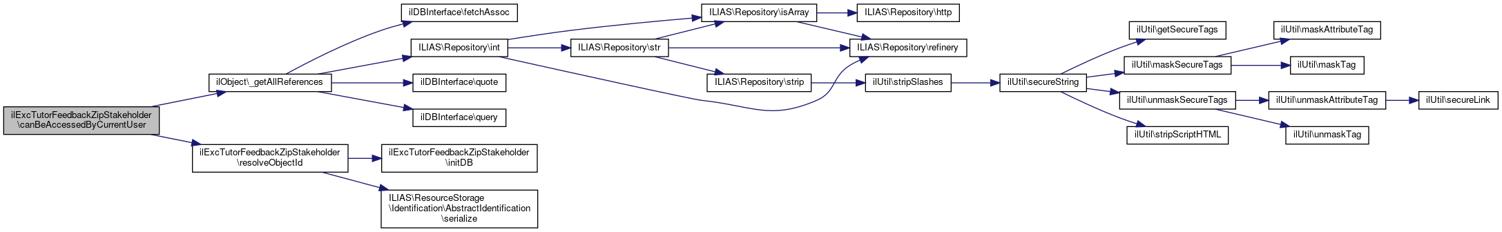 Here is the call graph for this function:| ilExcTutorFeedbackZipStakeholder::canBeAccessedByCurrentUser | ( | ResourceIdentification | $identification | ) |