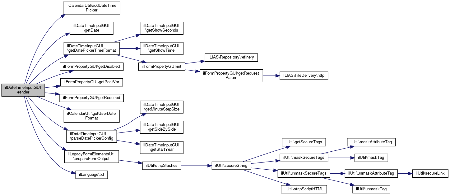 Here is the caller graph for this function:| ilDateTimeInputGUI::render | ( | ) |