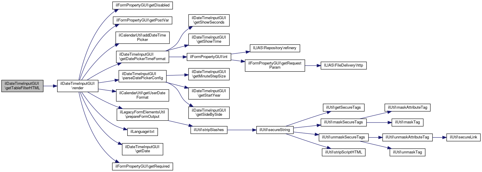 Here is the caller graph for this function:| ilDateTimeInputGUI::getTableFilterHTML | ( | ) |