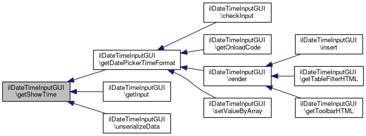 Here is the caller graph for this function:| ilDateTimeInputGUI::getShowTime | ( | ) |