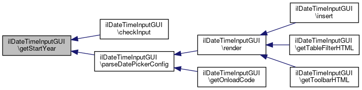 Here is the caller graph for this function:| ilDateTimeInputGUI::getStartYear | ( | ) |