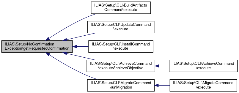 Here is the call graph for this function:| ILIAS\Setup\NoConfirmationException::getRequestedConfirmation | ( | ) |