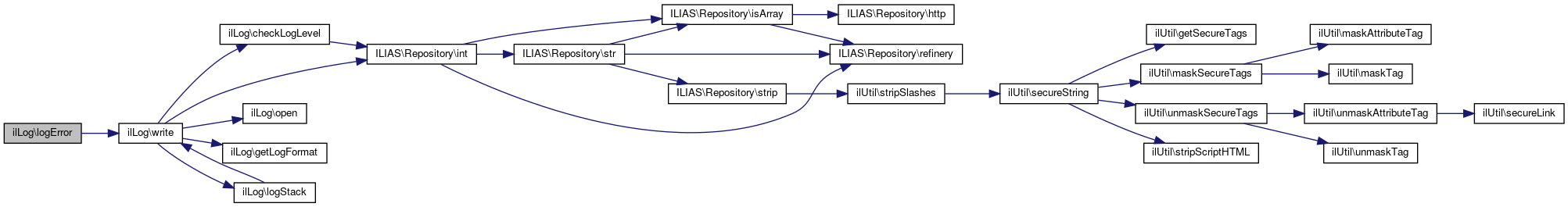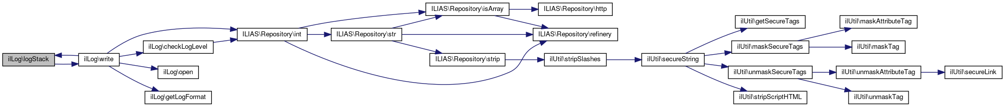 Here is the call graph for this function:| ilLog::logStack | ( | string | $a_message = '' | ) |
