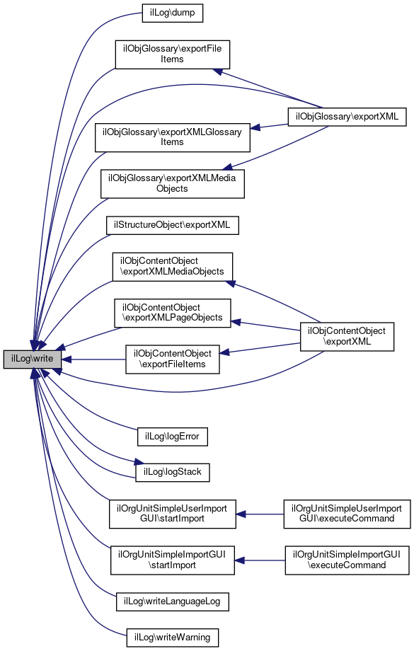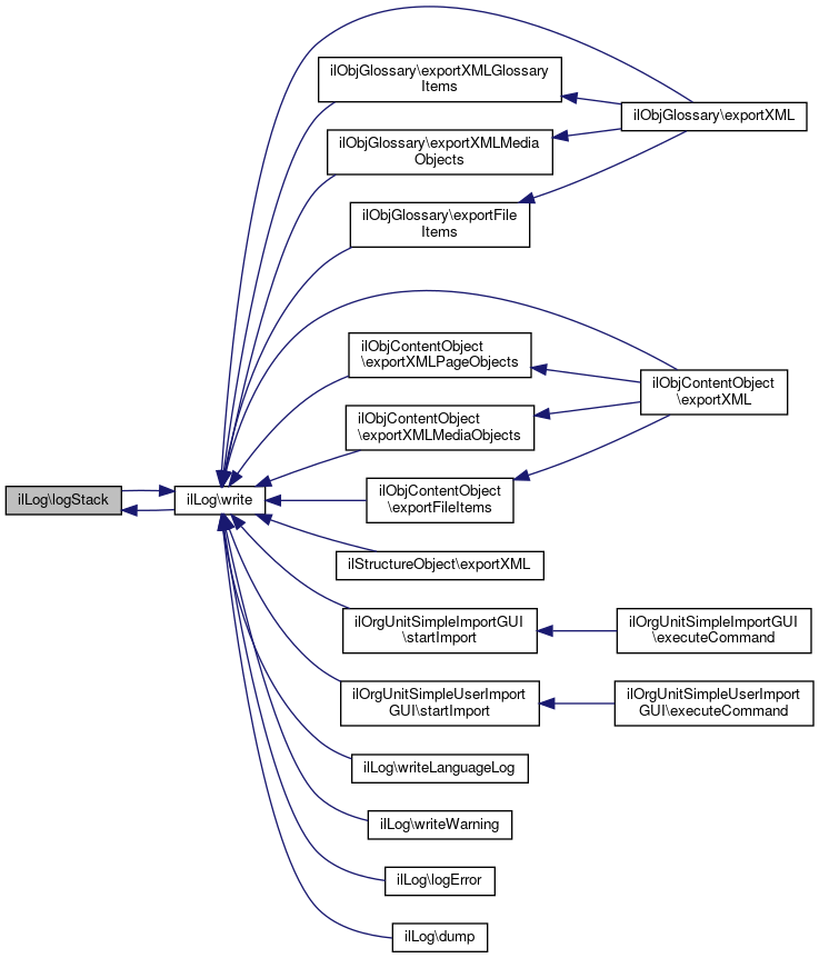 Referenced by dump(), ilObjGlossary\exportFileItems(), ilObjContentObject\exportFileItems(), ilStructureObject\exportXML(), ilObjGlossary\exportXML(), ilObjContentObject\exportXML(), ilObjGlossary\exportXMLGlossaryItems(), ilObjGlossary\exportXMLMediaObjects(), ilObjContentObject\exportXMLMediaObjects(), ilObjContentObject\exportXMLPageObjects(), logError(), logStack(), ilOrgUnitSimpleUserImportGUI\startImport(), ilOrgUnitSimpleImportGUI\startImport(), writeLanguageLog(), and writeWarning().