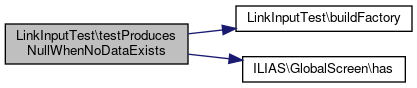 Here is the call graph for this function:| LinkInputTest::testProducesNullWhenNoDataExists | ( | ) |