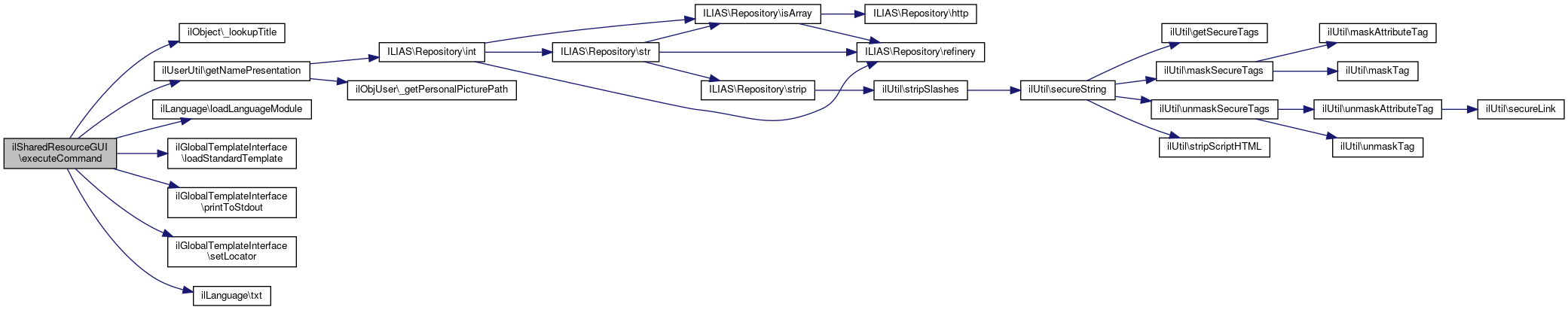 Here is the call graph for this function:| ilSharedResourceGUI::executeCommand | ( | ) |