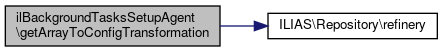 Here is the call graph for this function:| ilBackgroundTasksSetupAgent::getArrayToConfigTransformation | ( | ) |