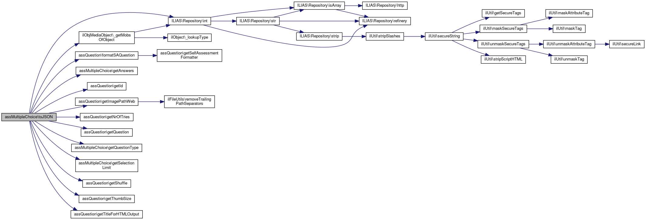 Here is the call graph for this function:| assMultipleChoice::toJSON | ( | ) |
