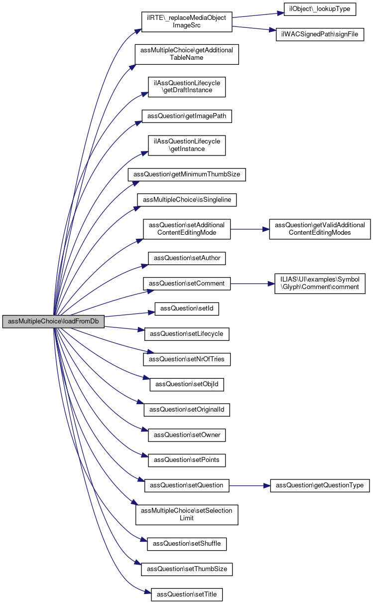 Here is the call graph for this function:| assMultipleChoice::loadFromDb | ( | $question_id | ) |