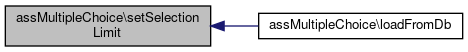 | assMultipleChoice::setSelectionLimit | ( | $selectionLimit | ) |