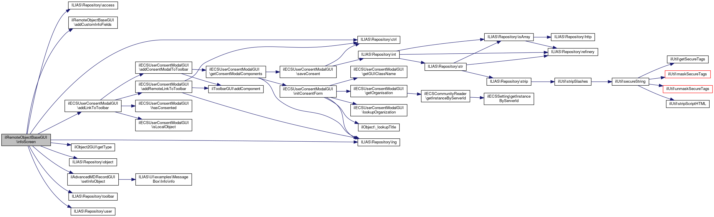 Here is the call graph for this function:| ilRemoteObjectBaseGUI::infoScreen | ( | ) |