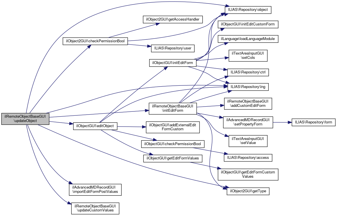 Here is the call graph for this function:| ilRemoteObjectBaseGUI::editObject | ( | ilPropertyFormGUI | $form = null | ) |