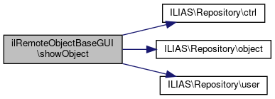Here is the call graph for this function:| ilRemoteObjectBaseGUI::showObject | ( | ) |