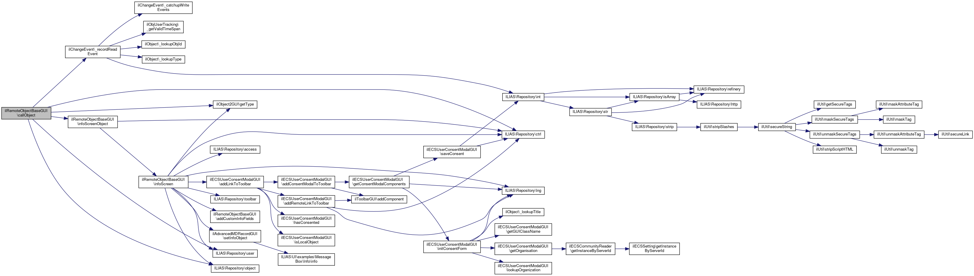 Here is the caller graph for this function:| ilRemoteObjectBaseGUI::callObject | ( | ) |