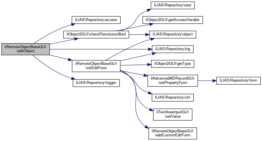 References ILIAS\Repository\access(), ilObject2GUI\checkPermissionBool(), initEditForm(), ILIAS\Repository\lng(), and ILIAS\Repository\logger().