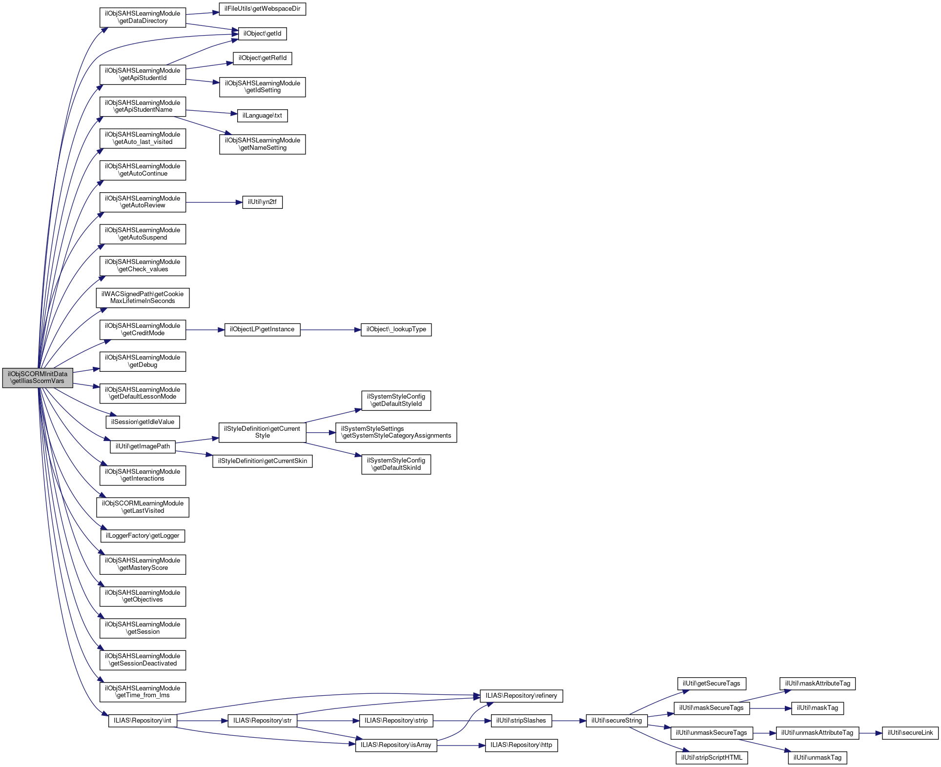 References $DIC, $ilDB, $ilSetting, $lng, CLIENT_ID, ilSessionControl\DEFAULT_MIN_IDLE, ilObjSAHSLearningModule\getApiStudentId(), ilObjSAHSLearningModule\getApiStudentName(), ilObjSAHSLearningModule\getAuto_last_visited(), ilObjSAHSLearningModule\getAutoContinue(), ilObjSAHSLearningModule\getAutoReview(), ilObjSAHSLearningModule\getAutoSuspend(), ilObjSAHSLearningModule\getCheck_values(), ilWACSignedPath\getCookieMaxLifetimeInSeconds(), ilObjSAHSLearningModule\getCreditMode(), ilObjSAHSLearningModule\getDataDirectory(), ilObjSAHSLearningModule\getDebug(), ilObjSAHSLearningModule\getDefaultLessonMode(), ilObject\getId(), ilSession\getIdleValue(), ilUtil\getImagePath(), ilObjSAHSLearningModule\getInteractions(), ilObjSCORMLearningModule\getLastVisited(), ilLoggerFactory\getLogger(), ilObjSAHSLearningModule\getMasteryScore(), ilObjSAHSLearningModule\getObjectives(), ilObjSAHSLearningModule\getSession(), ilObjSAHSLearningModule\getSessionDeactivated(), ilObjSAHSLearningModule\getTime_from_lms(), and ILIAS\Repository\int().