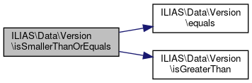 Here is the call graph for this function:| ILIAS\Data\Version::isSmallerThanOrEquals | ( | Version | $other | ) |