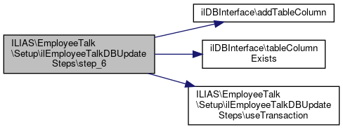 Here is the call graph for this function:| ILIAS\EmployeeTalk\Setup\ilEmployeeTalkDBUpdateSteps::step_6 | ( | ) |