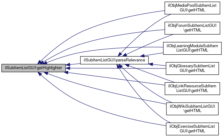 Here is the caller graph for this function:| ilSubItemListGUI::getHighlighter | ( | ) |