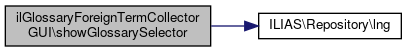 Here is the call graph for this function:| ilGlossaryForeignTermCollectorGUI::showGlossarySelector | ( | ) |