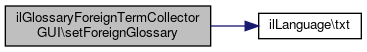 Here is the call graph for this function:| ilGlossaryForeignTermCollectorGUI::setForeignGlossary | ( | ) |