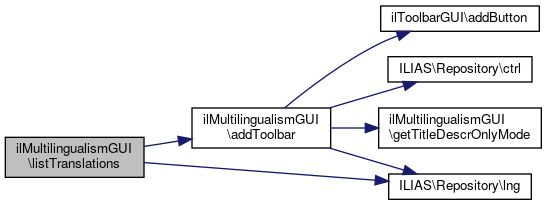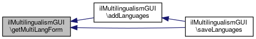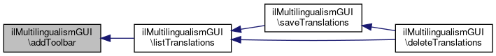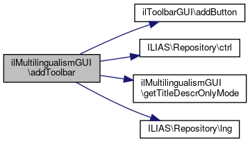 Here is the caller graph for this function:| ilMultilingualismGUI::addToolbar | ( | ) |