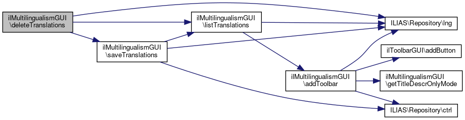 Here is the call graph for this function:| ilMultilingualismGUI::deleteTranslations | ( | ) |
