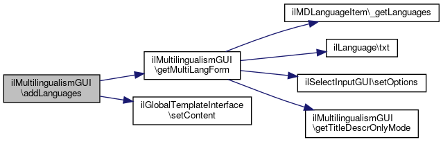 Here is the call graph for this function:| ilMultilingualismGUI::addLanguages | ( | ilPropertyFormGUI | $form = null | ) |