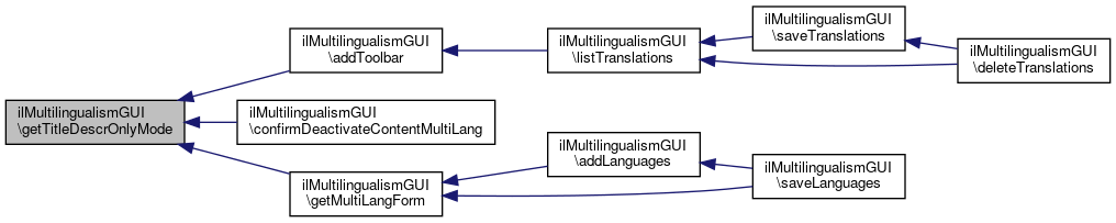 Here is the caller graph for this function:| ilMultilingualismGUI::getTitleDescrOnlyMode | ( | ) |