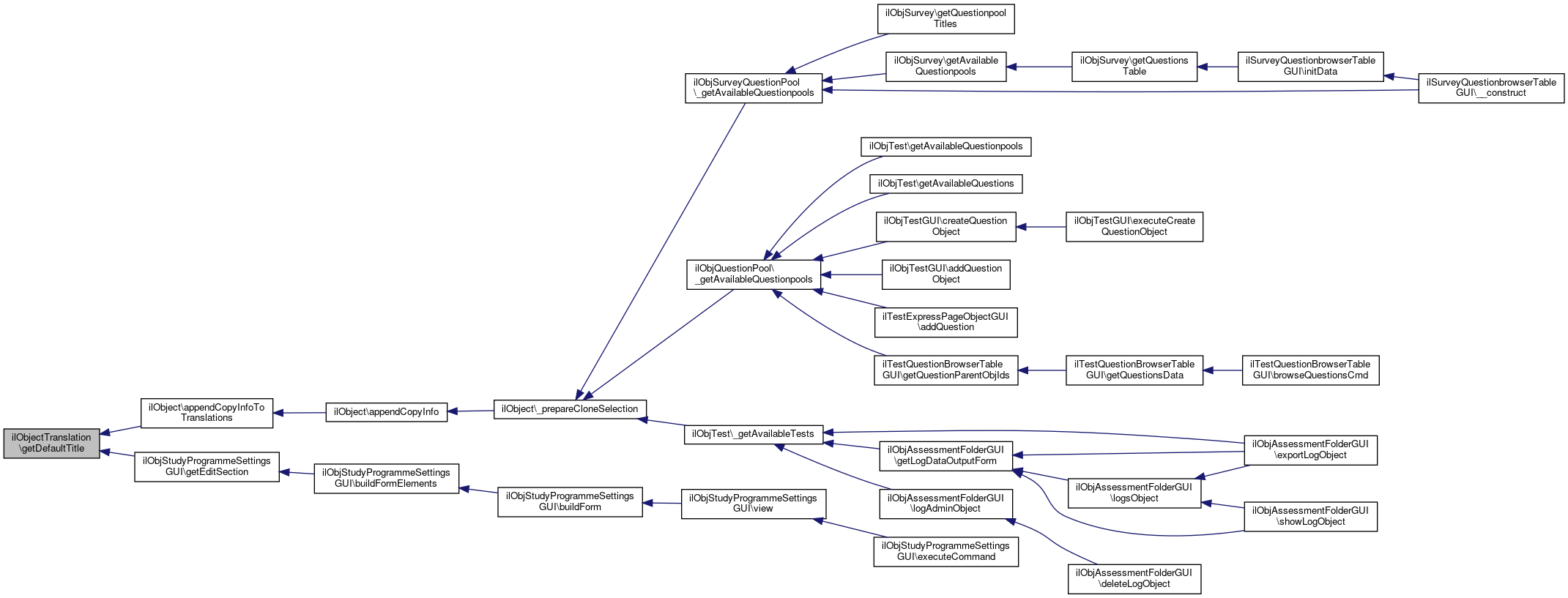 Here is the caller graph for this function:| ilObjectTranslation::getDefaultTitle | ( | ) |