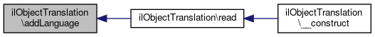 Here is the call graph for this function:| ilObjectTranslation::addLanguage | ( | string | $lang, |